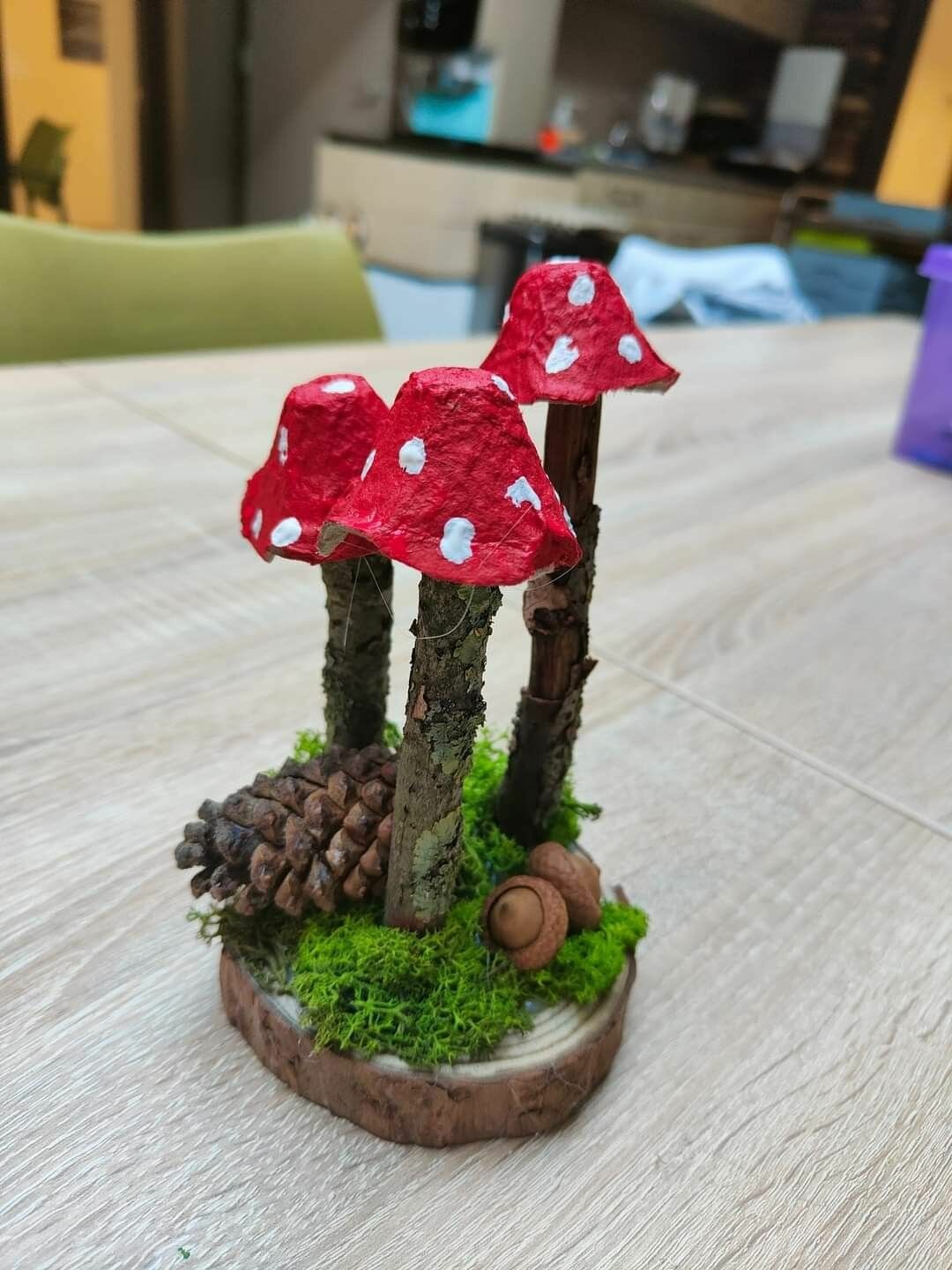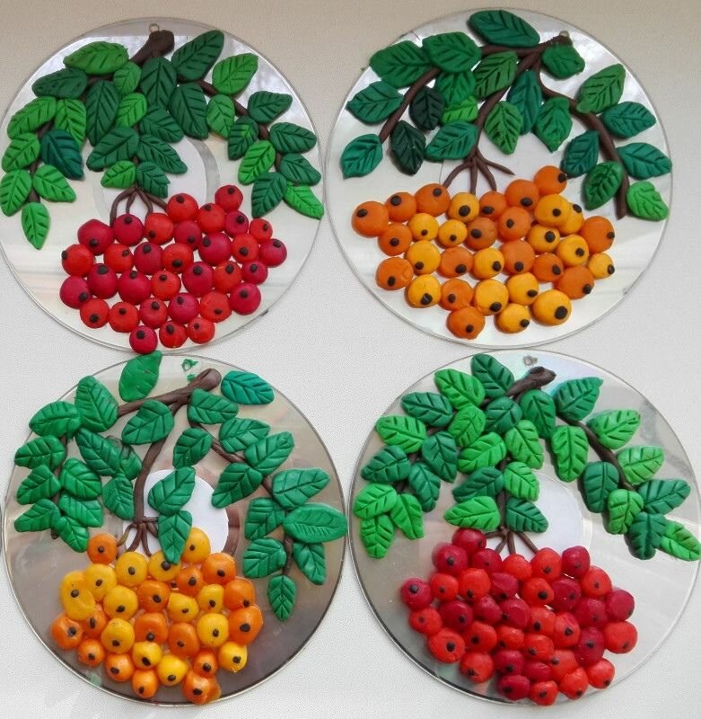 Рябина на диске, листья из ладошек, грибы из яичных лотков? Почему бы и нет!
