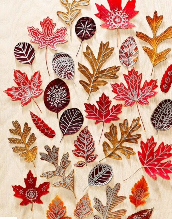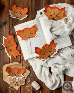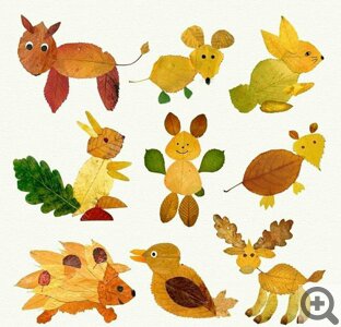 Красивые опавшие листья пригодятся для аппликаций. Можно делать уютные картинки с минималистичными персонажами.