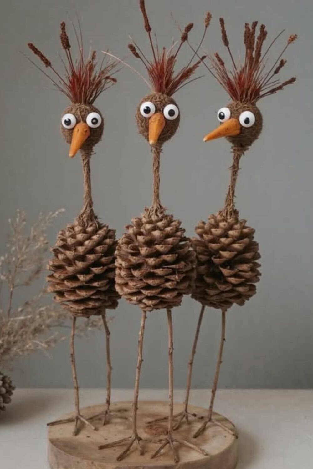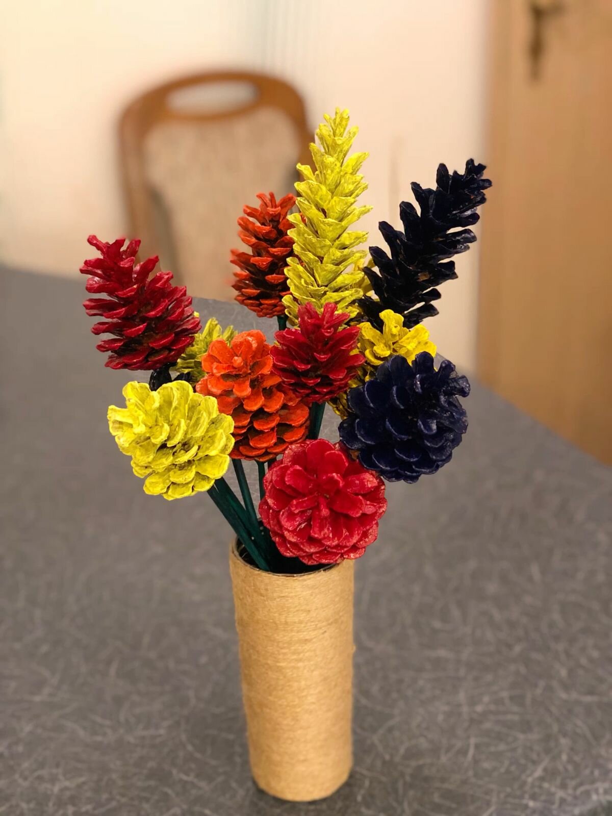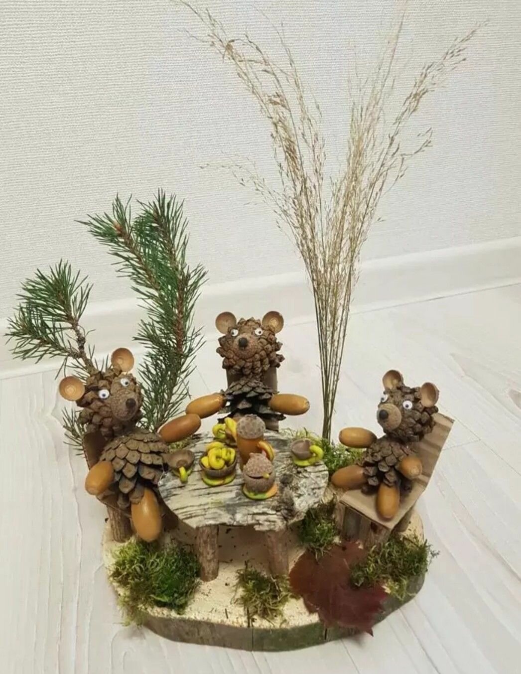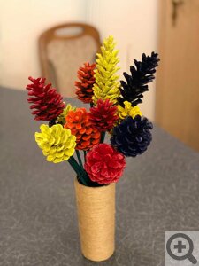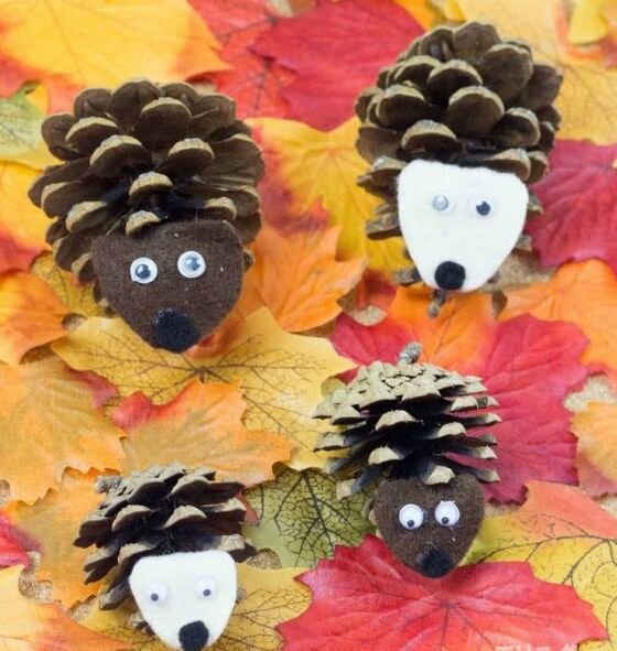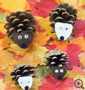 Из шишек можно легко сделать осенний букет, ежика и других животных (и даже человечков).