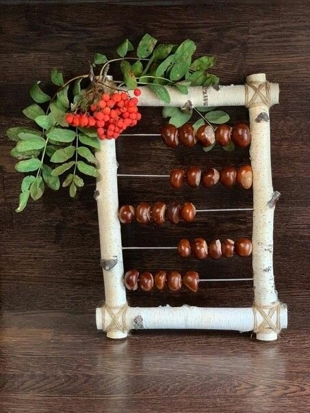 Жёлуди, каштаны, ягоды рябины и другие природные дары – что же из них сделать? Все, что подскажет фантазия: хоть счеты, хоть стрекозу.