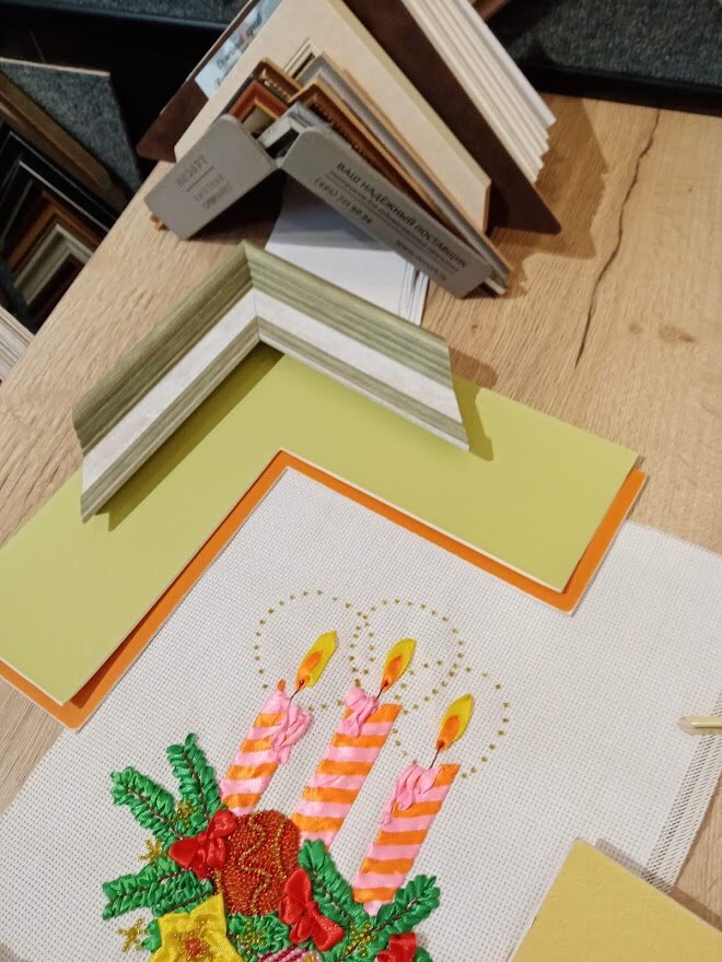 Особенно интересен мне был багет! С удовольствием увидела, как здорово оформляют картины, как увеличивают расстояние от работы до стекла, как выглядит безбликовое стекло. Заодно и свою вышивку отдала тут же в оформление!