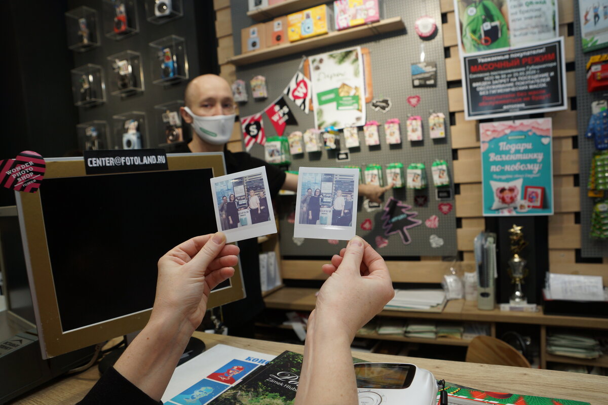 В Фотолэнде таким фотокамерам выделили целую витрину. Разумеется, разнообразие моделей Instax не оставило сибмам равнодушными. Наша тест-группа словно вернулась в прошлое, делая мгновенные фотографии и ожидая «что же там получится?!»