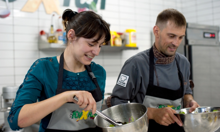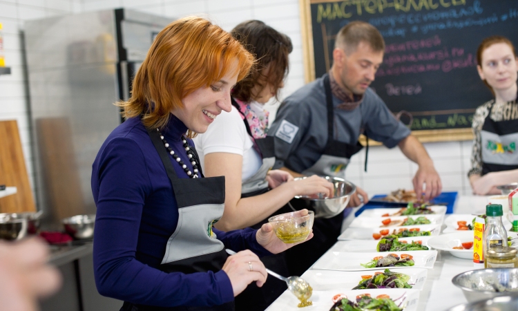- Рецепт соуса для салата был необычный. Вместе с горчицей в него добавили йогурт, да еще и сладкий с черносливом! В наших рядах начались сомнения – может, зря добавляем такой йогурт, может, лучше классический несладкий? Но, несмотря на наши сомнения, мы продолжили готовить салат под чутким руководством шеф-повара, и в итоге именно соус сыграл главную роль.