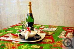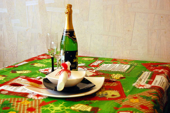 Не совсем новогодняя тема, такие необычные скатерти подойдут для любого праздника. Главное, чтобы гости были в состоянии прочитать… скатерть, на которой написаны интересные задания и условия конкурсов. Скажем честно, не совсем понимаем, как этим пользоваться. Но если вы испытываете серьезные трудности с организацией развлекательной программы для гостей, то это определенно ваше спасение. Дорогие гости читают скатерть, на вашей совести остается перемена блюд! Есть скатерти для детских и сезонных праздников.