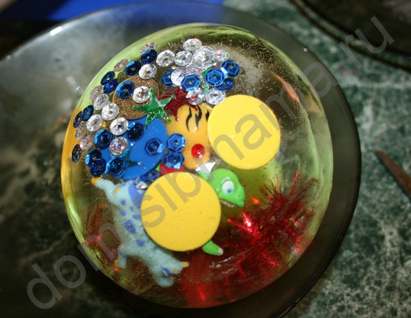 При желании воду можно подкрасить акварелью. Тогда будет цветная глыба.