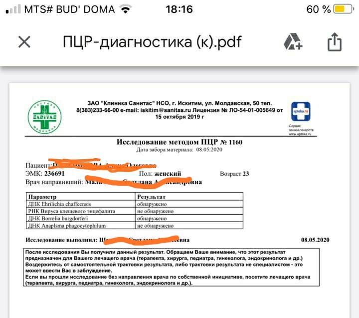 -8 мая к 8 часам увезли клеща в лабораторию.к вечеру к 17 часам был готов анализ клеща