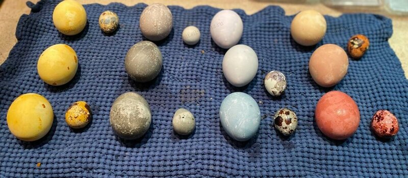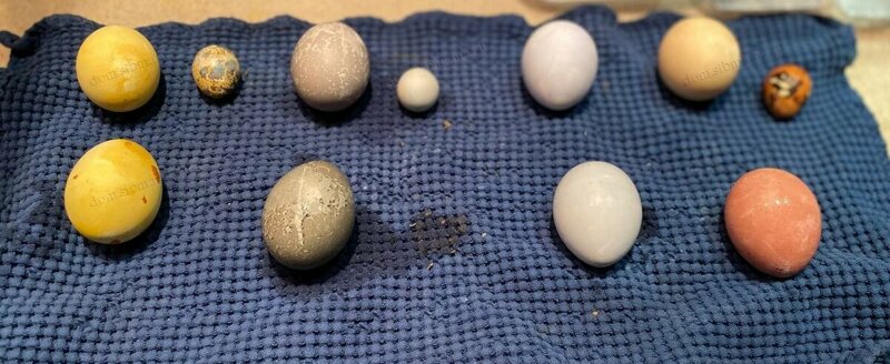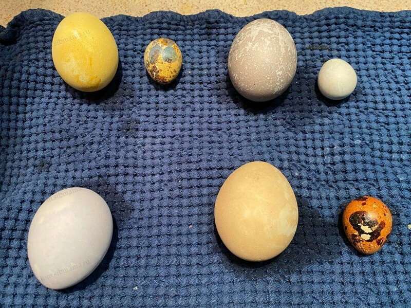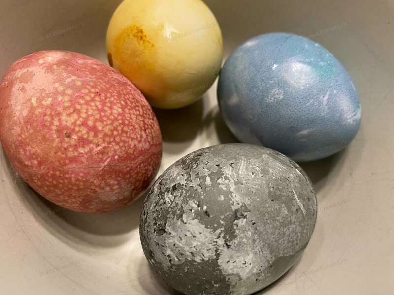 А вот так выглядили куриные яички на следующее утро. У куркумы не удалось весь порошок отчистить, боялась повредить скорлупу.