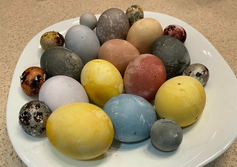 Я попробовала натереть маслом самые яркие четыре яйца для красоты. Не хуже магазинных красок смотрится!