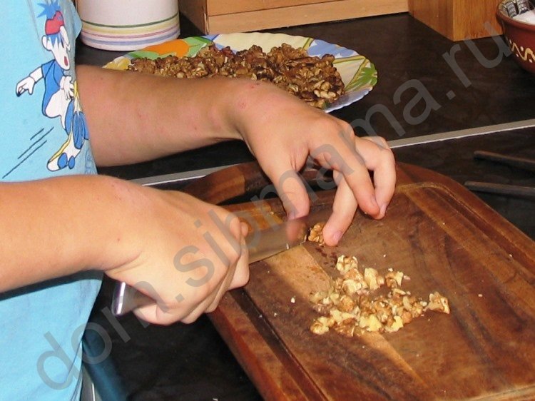![]() Взяли 7 некрупных яиц, отделили белки от желтков. ![]() Белки взбили до устойчивой пены. ![]() Сливочное масло, сахар и желтки смешали венчиком (вручную!) до тех пор, пока масса не стала однородной и не побелела. ![]() Постепенно и аккуратно добавили в тесто все остальные ингредиенты (белки, молоко, щепотку соли, коньяк). ![]() Замесили тесто средней упругости, завернули во влажную салфетку и оставили на 30 минут. ![]() Тем временем занялись подготовкой глазури. Грецкие орехи прокалили на сковороде и порезали на мелкие кусочки. Ммм... аромат божественный! ![]() Мед смешали с сахаром и нагрели до полного растворения последнего. Это очень важно! ![]() Теперь вернулись к тесту. Раскатали пласты толщиной 3-4 мм, нарезали сначала на тонкие полоски, потом на квадратики размером около сантиметра. ![]() Далее мне, как фотографу, пришлось прерваться, потому как мастеру потребовалась помощь. Этап нарезки теста и обжарки квадратиков должен проходить без задержек, чтобы тесто не успело подсохнуть. Так что работали в четыре руки. На сковороду налили топленое сливочное и подсолнечное масла, разогрели до 180 градусов и обжарили тесто партиями до золотистого цвета.